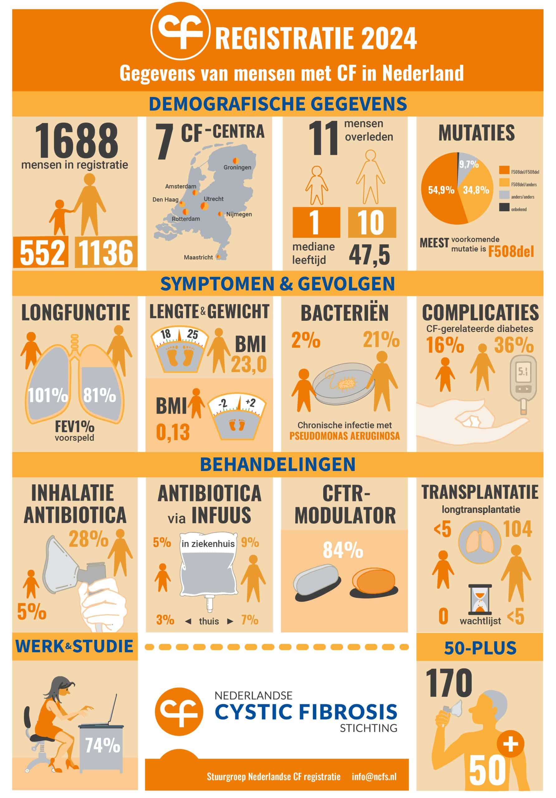 In de Nederlandse CF Registratie houden we allerlei medische gegevens bij van mensen met CF. Hoe dat precies werkt? En wat we met de gegevens doen? Bekijk je in deze infographic.